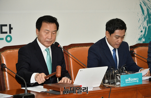 손학규 바른미래당 대표가 12일 오전 국회에서 열린 최고위원회의에서 의사진행을 하고 있다.