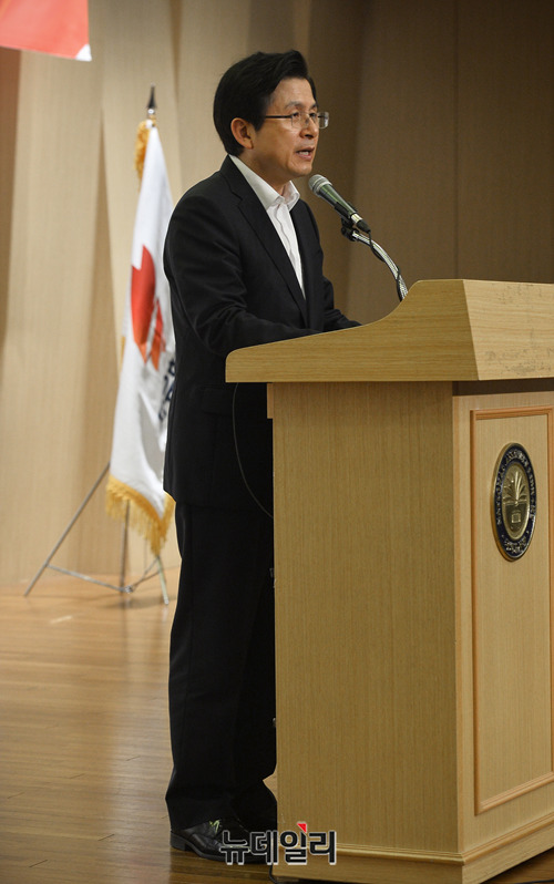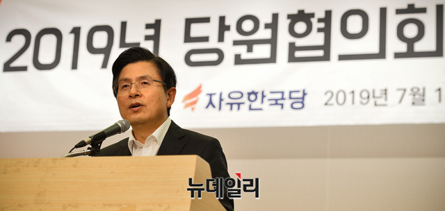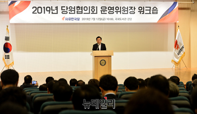 황교안 자유한국당 대표가 12일 오전 국회 도서관에서 열린 원외당협위원장 워크숍에 참석해 인사말을 하고 있다.