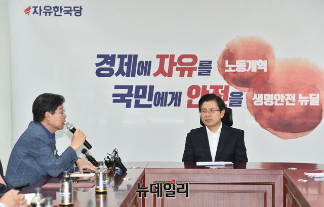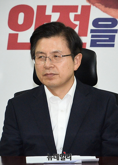 황교안 자유한국당 대표가 12일 오전 국회 의원회관에서 열린 미디어특별위원회 임명장수여식에 참석해 회원들의 발언을 듣고 있다.