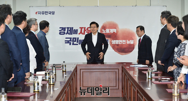 [포토] 한국당 미디어특위 임명장 수여식 참석한 황교안