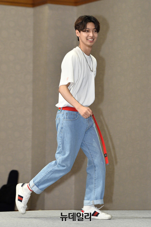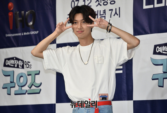 아이돌그룹 보이프렌드 출신 조광민이 12일 오후 서울 마포구 베스트 웨스턴 프리미어 서울가든호텔에서 열린 큐브TV 예능프로그램 '예쁘장한 구오즈' 제작발표회에서 포토타임을 갖고 있다.