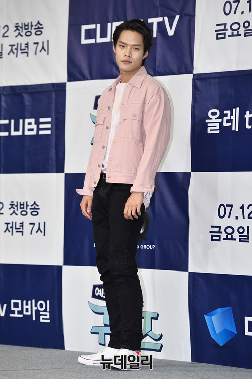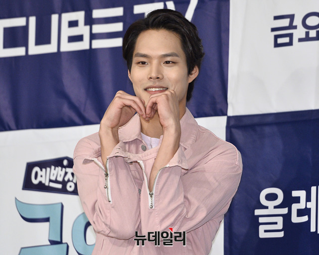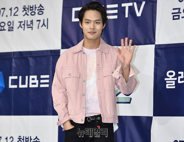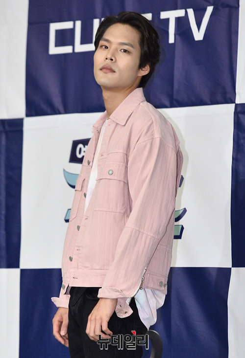 모델 백경도가 12일 오후 서울 마포구 베스트 웨스턴 프리미어 서울가든호텔에서 열린 큐브TV 예능프로그램 '예쁘장한 구오즈' 제작발표회에서 포토타임을 갖고 있다.