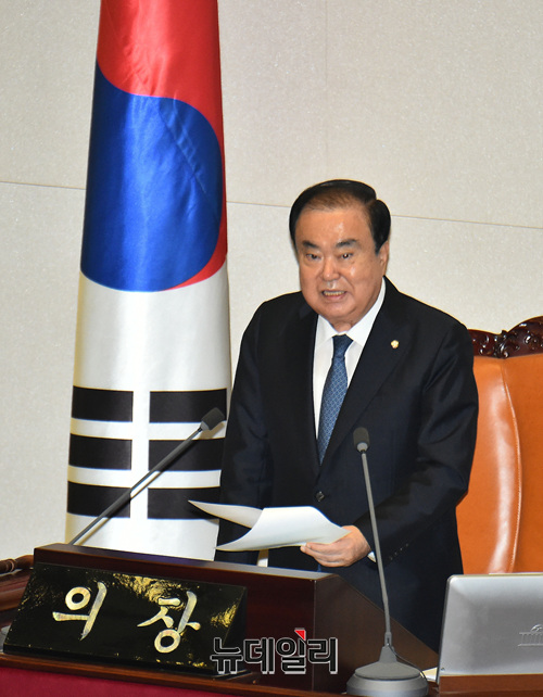 문희상 국회의장이 12일 오후 국회에서 열린 '제15회 대한민국 어린이국회' 행사에 참석해 어린들에게 인사말을 하고 있다.