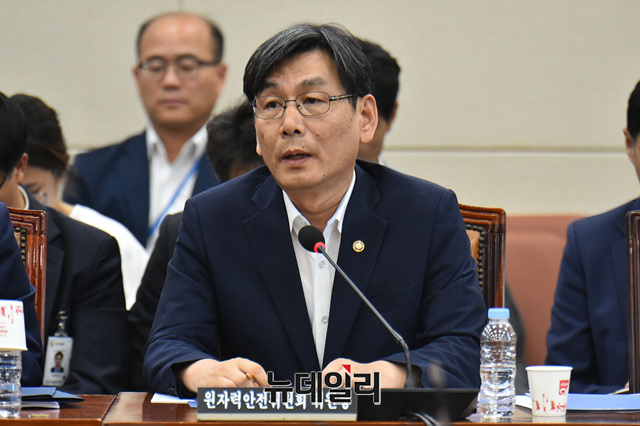 엄재식 원자력안전위원회 위원장이 12일 오후 국회에서 열린 과학기술정보방송통신위원회 전체회의에서 의원들의 질문에 답하고 있다.