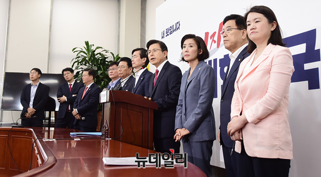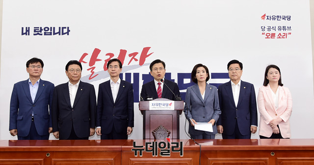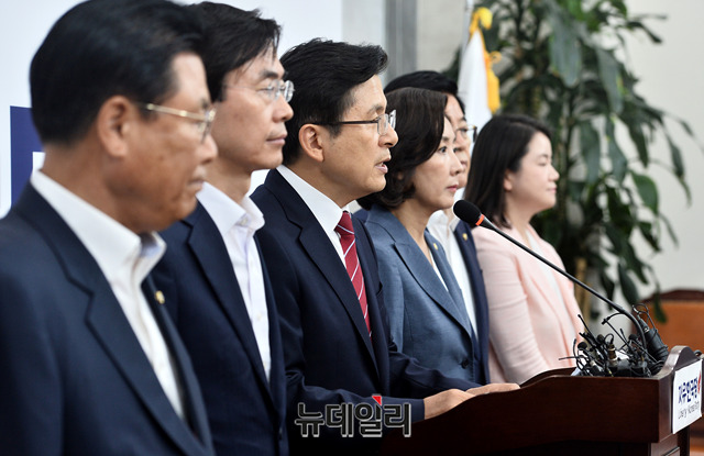 황교안 자유한국당 대표가 15일 오전 국회에서 일본의 수출 규제 조치와 관련 기자회견을 갖고 있다. 이날 황 대표는 "실질적 논의가 가능하다면 대통령과 어떤 회담이라도 수용할 것"이라고 말했다.