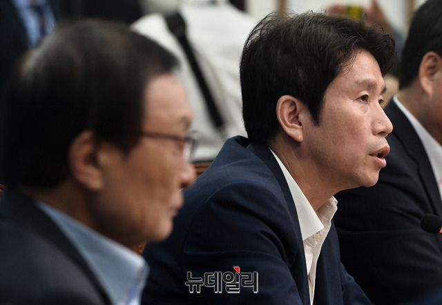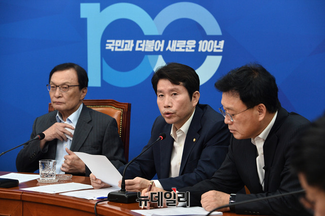 이인영 더불어민주당 원내대표가 15일 오전 국회에서 열린 최고위원회의에서 모두발언을 하고 있다.