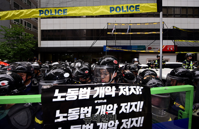 [포토] 더불어민주당사 찾은 민노총...경찰과 대치후 해산