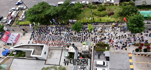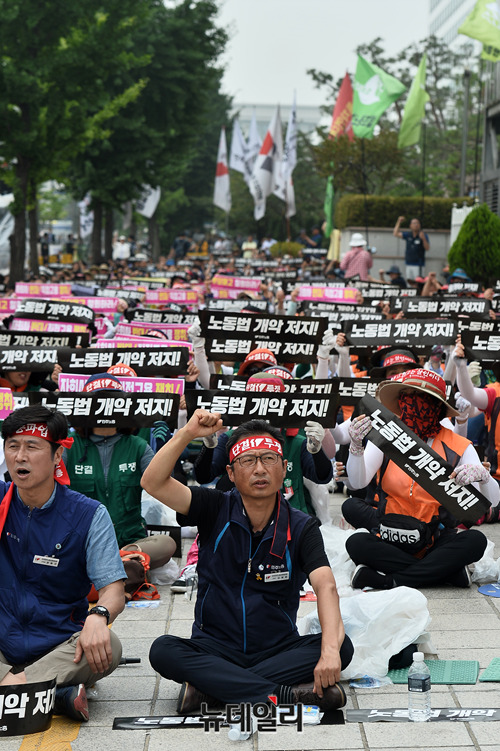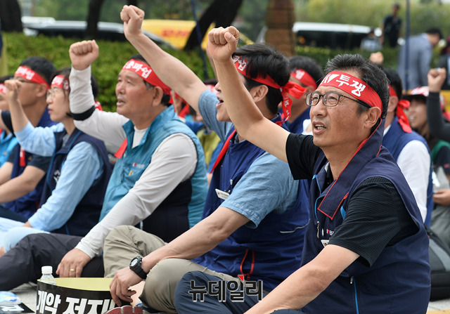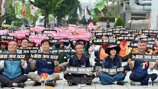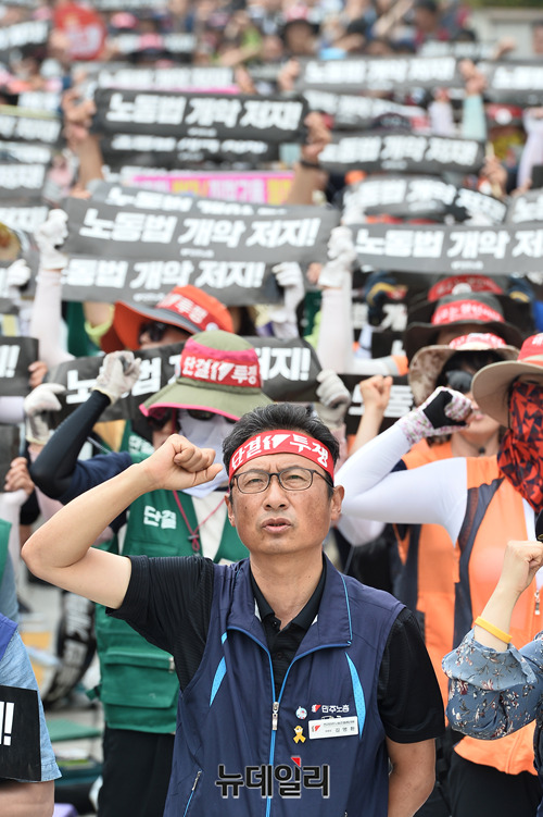 [포토] 최저임금 반발, 국회 앞 찾은 민노총...18일부터 총파업 예고