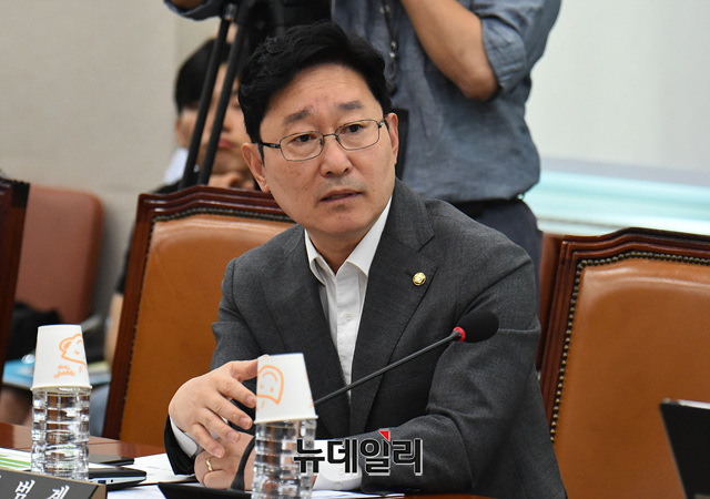 박범계 더불어민주당 의원이 16일 오전 국회에서 열린 산중위 전체회의에 참석해 발언을 하고 있다.