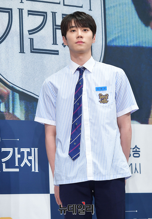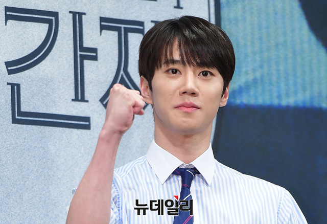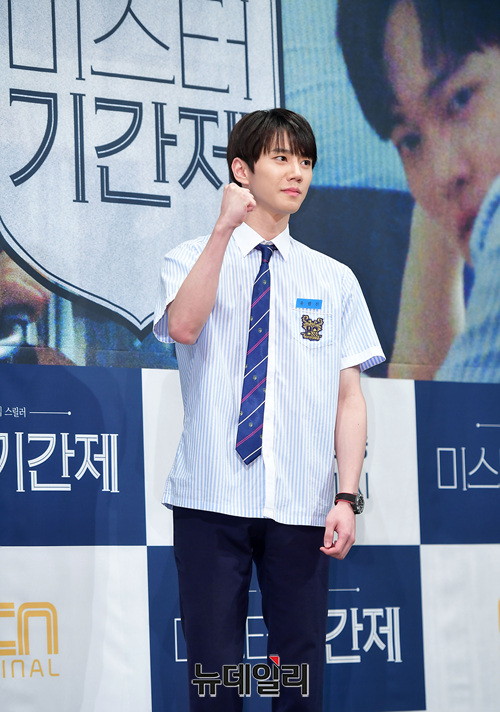 배우 이준영이 16일 오후 서울 강남구 임피리얼팰리스 호텔에서 열린 OCN 수목 오리지널 '미스터 기간제(연출 성용일 박지현, 극본 장홍철)' 제작보고회에서 포토타임을 갖고 있다.