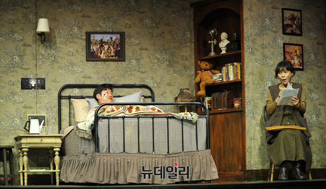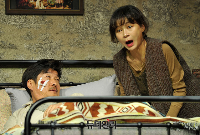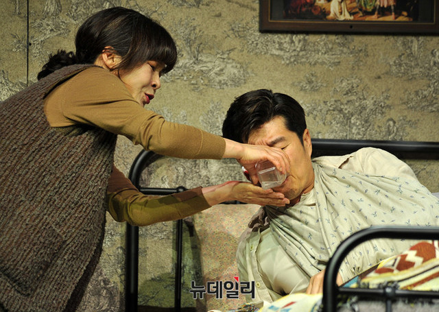 배우 김상중과 길해연이 16일 오후 서울 종로구 세종문화회관 M시어터에서 열린 연극 '미저리' 프레스콜에서 하이라이트 장면을 시연하고 있다. 김상중은 베스트셀러 작가 '폴 셸던' 역을, 길해연은 광적인 집착을 드러내는 애독자 '애니 윌크스' 역을 맡았다.'미저리' 는 미국의 대표적인 작가 스티븐 킹(Stephen King)의 소설을 원작으로 각색한 작품이다. 현대사회의 병리 현상 가운데 하나인 스토킹을 주제로 한정된 공간에서 벌어지는 스릴러물이다. 9월 15일까지 세종문화회관 M시어터에서 공연된다.