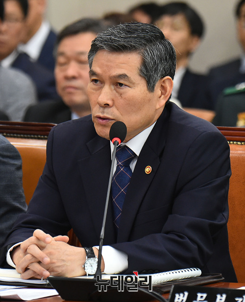 정경두 국방부 장관이 16일 오후 국회에서 열린 법제사법위원회 전체회의에 출석해 의원들의 질문에 답변하고 있다.