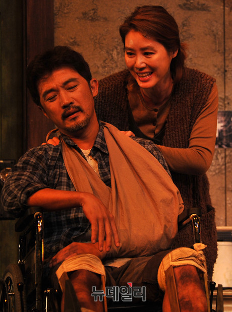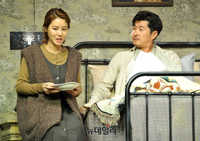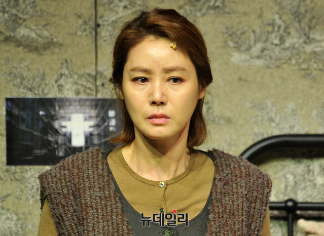 배우 김성령이 16일 오후 서울 종로구 세종문화회관 M시어터에서 열린 연극 '미저리' 프레스콜에서 하이라이트 장면을 시연하고 있다. 김성령은 광적인 집착을 드러내는 애독자 '애니 윌크스' 역을 맡았다.'미저리' 는 미국의 대표적인 작가 스티븐 킹(Stephen King)의 소설을 원작으로 각색한 작품이다. 현대사회의 병리 현상 가운데 하나인 스토킹을 주제로 한정된 공간에서 벌어지는 스릴러물이다. 9월 15일까지 세종문화회관 M시어터에서 공연된다.