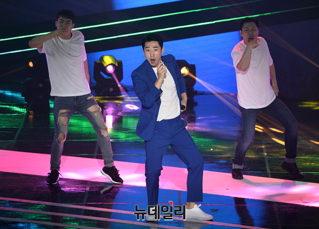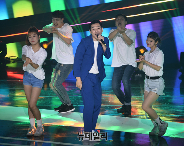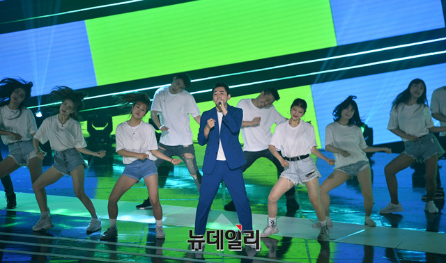 트롯가수 영기가 16일 오후 서울 마포구 SBS 프리즘타워에서 열린 SBS MTV '더 쇼(THE SHOW)' 생방송에서 무대를 선보이고 있다.