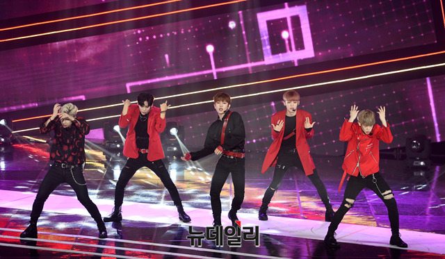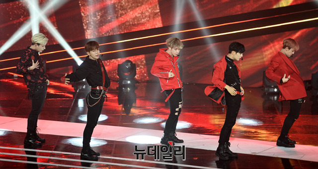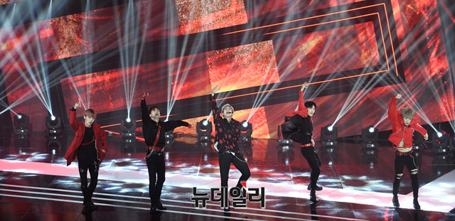 아이돌그룹 A.C.E(에이스)가 16일 오후 서울 마포구 SBS 프리즘타워에서 열린 SBS MTV '더 쇼(THE SHOW)' 생방송에서 무대를 선보이고 있다.