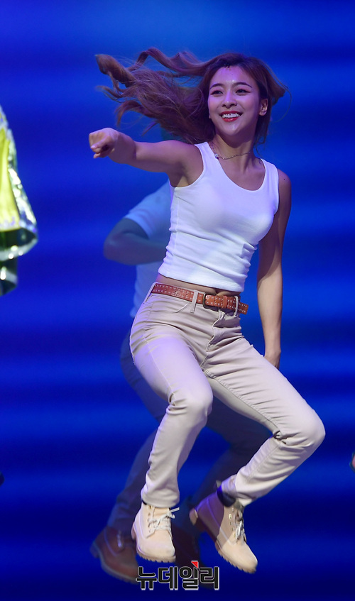 가수 루나가 16일 오후 서울 강남구 LG아트센터에서 열린 뮤지컬 '맘마미아!' 프레스콜에서 하이라이트 장면을 시연하고 있다.