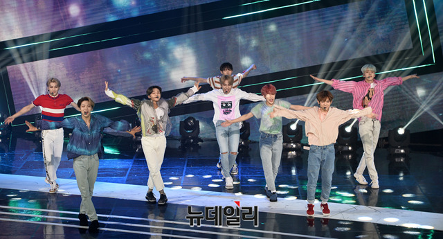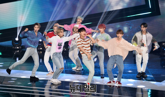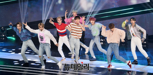 아이돌그룹 ATEEZ(에이티즈)가 16일 오후 서울 마포구 SBS 프리즘타워에서 열린 SBS MTV '더 쇼(THE SHOW)' 생방송에서 무대를 선보이고 있다.