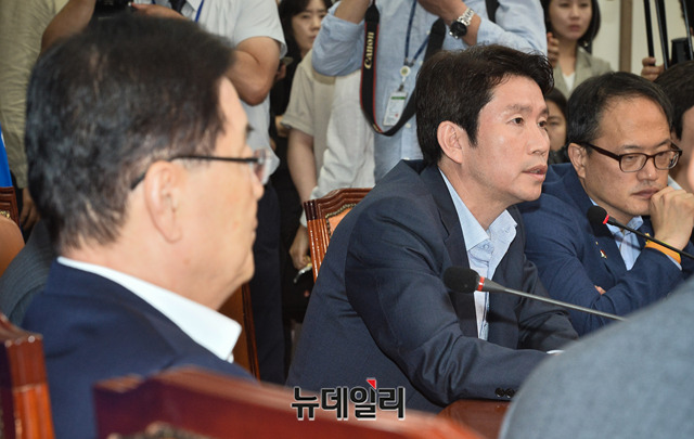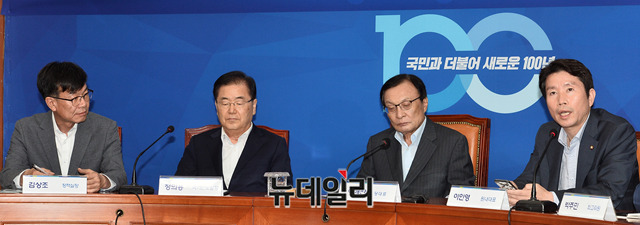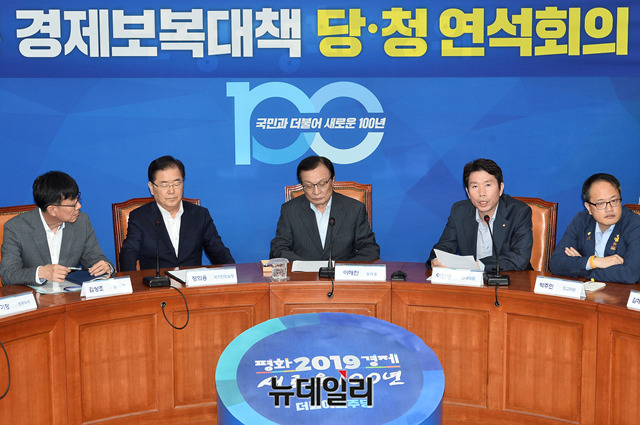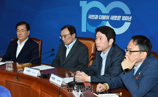 이인영 더불어민주당 원내대표가 16일 오후 국회에서 열린 '일본 경제보복대책 당청 연석회의'에서 모두발언을 하고 있다. 이날 회의는 일본의 수출 규제에 대한 대응책을 논의하기 위해 열렸다.
