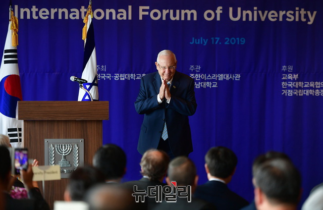 [포토] '한-이스라엘 총장 국제포럼' 입장하는 '레우벤 리블린' 대통령