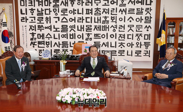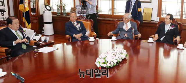 [포토] 전직 국회의장과 환담나누는 문희상 국회의장