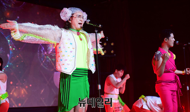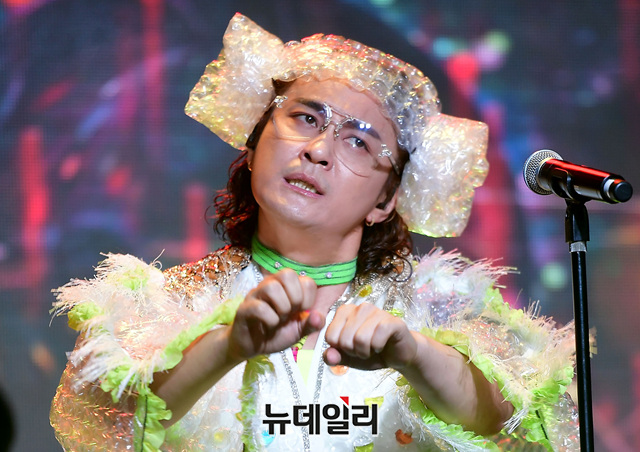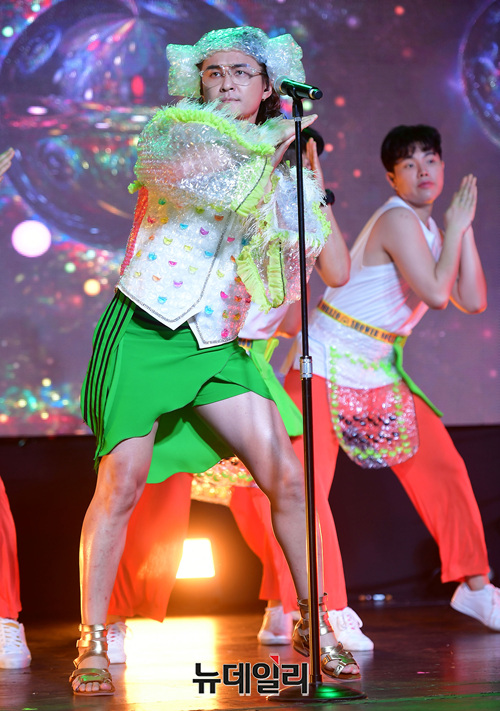 가수 노라조가 17일 오후 서울 마포구 홍대무브홀에서 열린 디지털 싱글 '샤워' 쇼케이스에서 무대를 선보이고 있다. 이번 신곡 '샤워'는 이전 곡 '사이다' 이후 1년 만에 발표하는 신곡. 뭄바톤의 리듬과 아라빅 스케일 멜로디로 이국적인 느낌을 더했다. 음원은 이날 정오에 공개됐다.