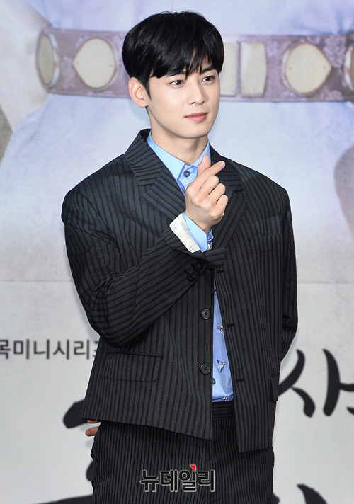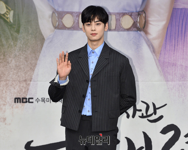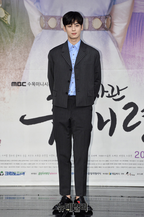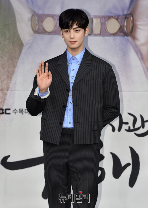 배우 차은우가 17일 오후 서울 마포구 MBC신사옥에서 열린 MBC 드라마 '신입사관 구해령' 제작발표회에서 포토타임을 갖고 있다.