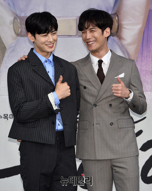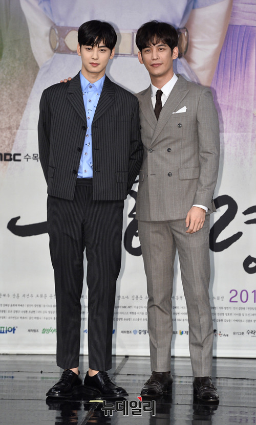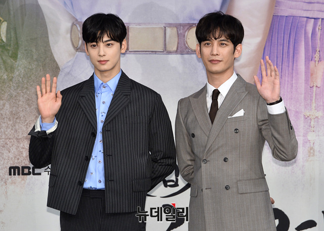 배우 차은우, 박기웅이 17일 오후 서울 마포구 MBC신사옥에서 열린 MBC 드라마 '신입사관 구해령' 제작발표회에서 포토타임을 갖고 있다.