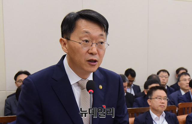 김현준 국세청장이 18일 오전 국회에서 열린 기획재정위원회 전체회의에 참석해 업무보고를 하고 있다.