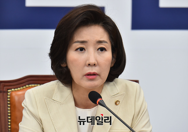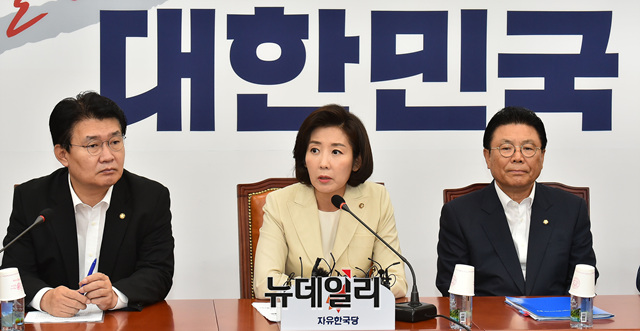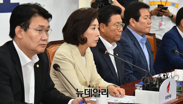 나경원 자유한국당 원내대표가 19일 오전 국회에서 열린 원내대책회의에서 모두발언을 하고 있다.