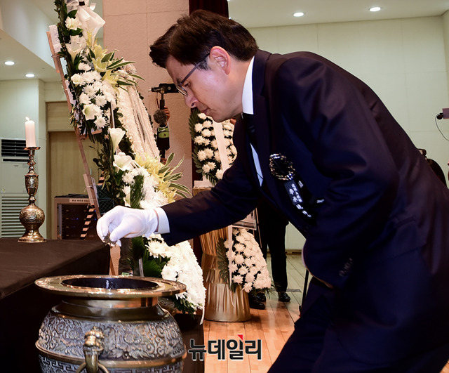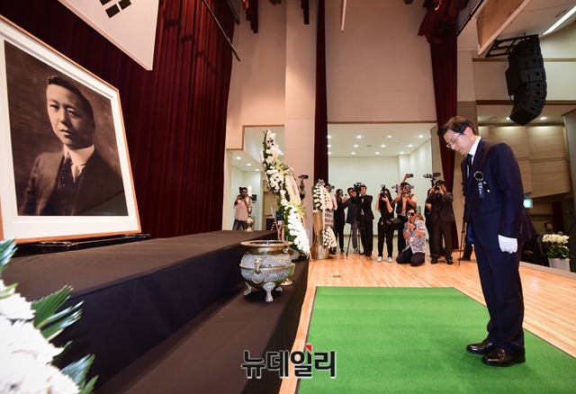 황교안 자유한국당 대표가 19일 오전 서울 동작구 국립서울현충원에서 열린 '이승만 전 대통령 서거 54주기 추모식'에 참석해 분향하고 있다.'이승만건국대통령기념사업회' 주관으로 열리는 추모식에는 황교안 자유한국당 대표, 김진태 의원, 전희경 의원, 강효상 의원, 조원진, 홍문종 우리공화당 공동대표, 김문수 전 경기지사, 이홍구 전 국무총리, 신철식 이승만건국대통령 기념사업회장 등 700여 명이 참석했다.이승만 전 대통령은 해방 후 제헌국회의장과 제1∼3대 대통령을 거쳐 국가안보와 자유 민주국가 발전의 기틀 마련에 앞장섰다. 이 대통령은 1965년 7월 19일 향년 91세로 하와이에서 서거했다. 유가족의 뜻에 따라 같은 해 7월 27일 가족장으로 국립서울현충원에 안장됐다.