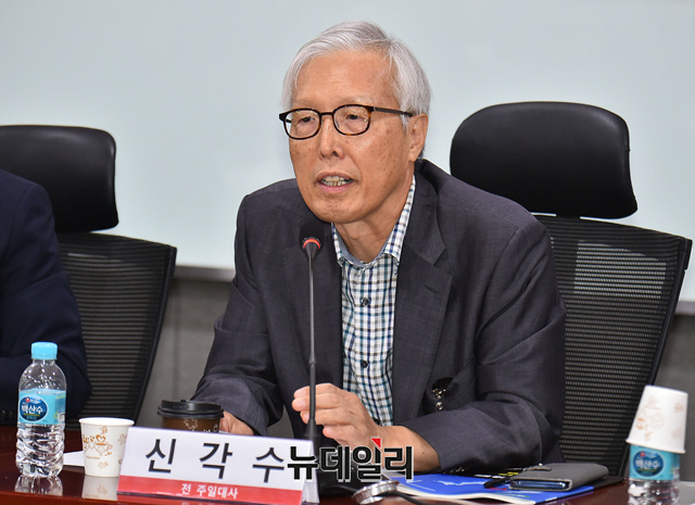 신각수 전 주일대사가 19일 오전 국회 의원회관에서 열린 '최근 한·일 갈등의 진단과 해법' 긴급정책세미나에 참석해 발언을 하고 있다.