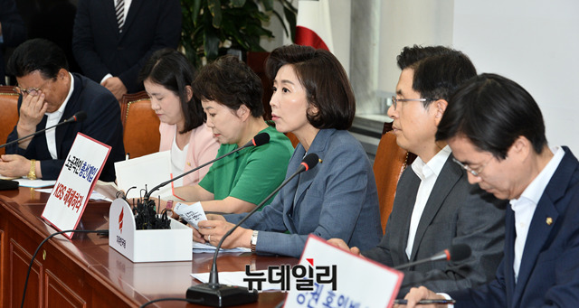 나경원 자유한국당 원내대표가 22일 오전 국회에서 열린 최고위원회의에서 모두발언을 하고 있다.