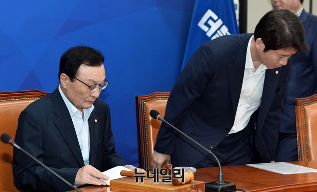 [포토] 민주당 최고위 입장하는 '이해찬-이인영'