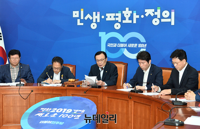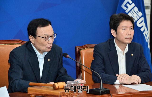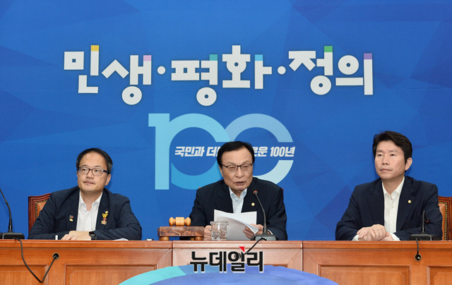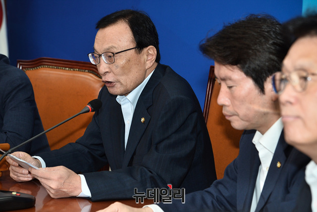 이해찬 더불어민주당 대표가 22일 오전 국회에서 열린 최고위원회의에서 모두발언을 하고 있다.