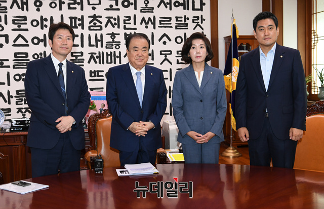 [포토] 한자리에 모인 국회의장과 여야 3당 원내대표