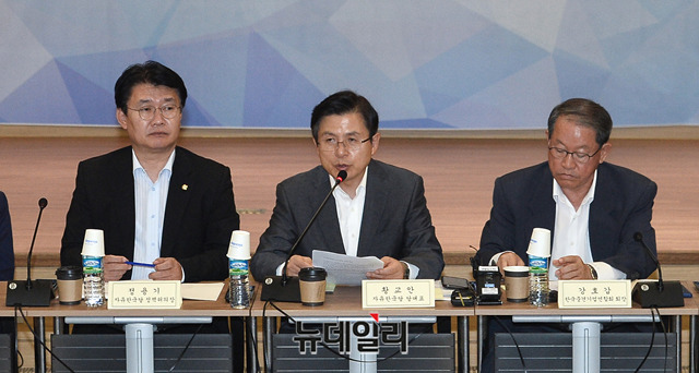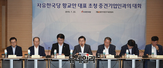 황교안 자유한국당 대표가 22일 오후 서울 마포구 한국중견기업연합회에서 열린 '중견기업인과의 대화'에서 인사말을 하고 있다.
