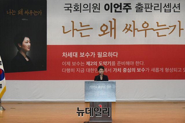 이언주 무소속 의원이 22일 오후 국회 의원회관에서 열린 본인의 '나는 왜 싸우는가' 출판 리셉션에서 인사말을 하고 있다.