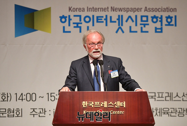 '미하엘 라이터러(Michael Reiterer') 주한EU대사가 23일 오후 서울 중구 한국프레스센터에서 열린 '제3회 인터넷 신문의 날' 기념식에서 축사를 하고 있다.