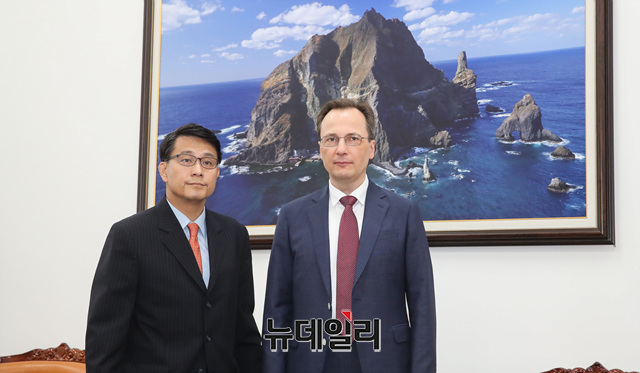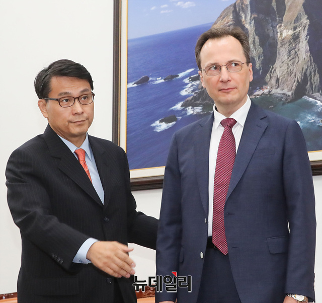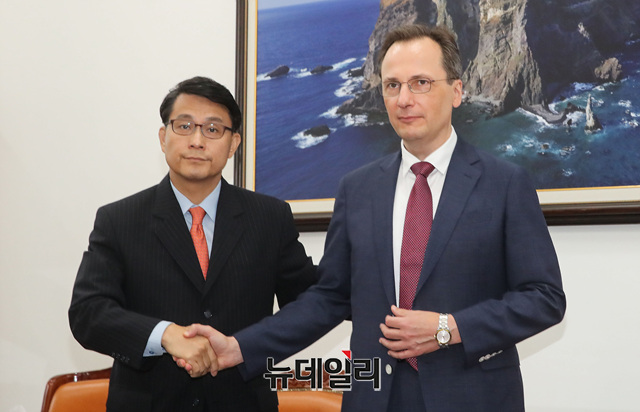 막심 볼코프 주한 러시아 대사대리가 24일 오전 국회를 방문해 윤상현 외교통일위원회 위원장과 면담하고 있다.