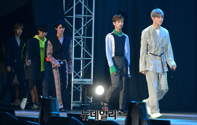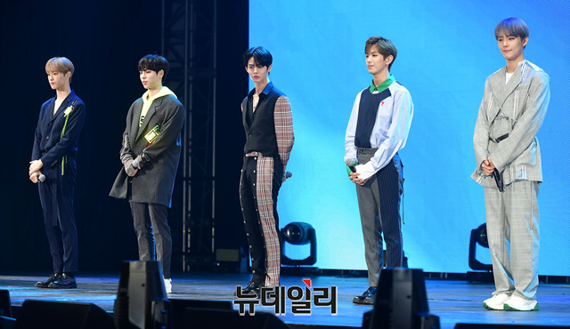 5인조 아이돌그룹 CIX(씨아이엑스)가 24일 오후 서울 송파구 올림픽공원 SK핸드볼경기장에서 열린 데뷔 쇼케이스에 입장하고 있다.