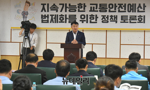 김관영 바른미래당 의원이 24일 오후 국회 의원회관 '지속가능한 교통안전예산 법제화를 위한 정책 토론회'에 참석해 인사말을 하고 있다.