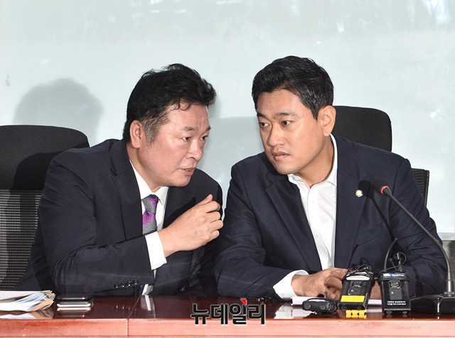 [포토] 바른미래당 정상화를 위한 비상회의, 대화하는 '오신환-김철근'