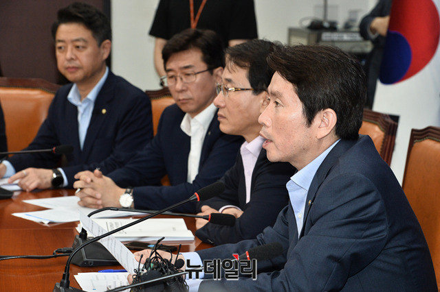 이인영 더불어민주당 원내대표가 25일 오전 국회에서 열린 정책조정회의에서 모두발언을 하고 있다.