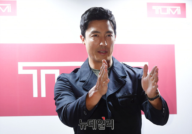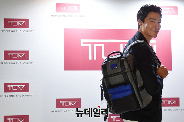 배우 다니엘 헤니가 25일 오후 서울 강남구 현대카드 트래블 라이브러리에서 열린 투미 '트래블 캠페인' 론칭 행사에서 포토타임을 갖고 있다.