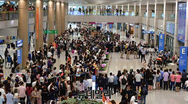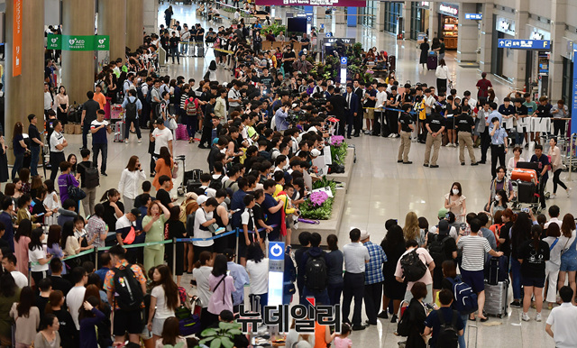 유벤투스 선수단을 기다리는 국내 팬과 취재진이 26일 오후 인천국제공항 입국장에서 선수단을 기다리고 있다. 크리스티아누 호날두를 비롯한 유벤투스 선수단은 전세기편으로 인천국제공항으로 입국할 예정이다. 유벤투스 선수단은 이날 오후 8시부터 서울월드컵경기장에서 팀K리그와 경기를 앞두고 있다. (인천=정상윤 기자)