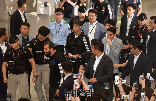 유벤투스의 '크리스티아누 호날두 (Cristiano Ronaldo)'가 26일 오후 인천국제공항으로 입국하고 있다.