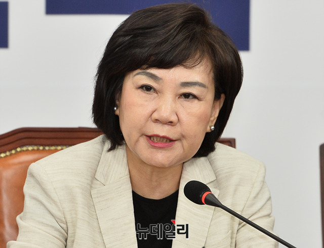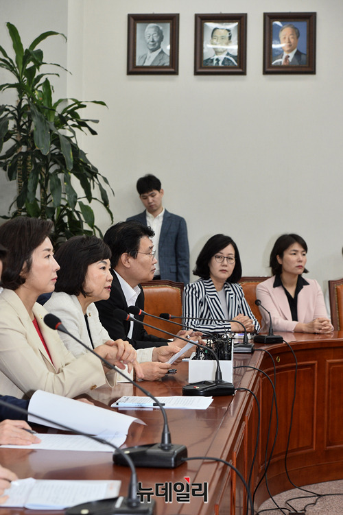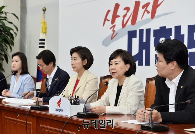 김순례 자유한국당 의원이 29일 오전 국회에서 열린 최고위원회의에서 모두발언을 하고 있다.
