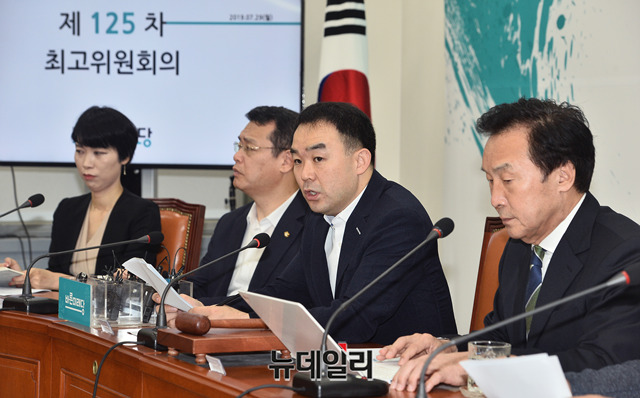 채이배 바른미래당 의원이 29일 오전 국회에서 열린 최고위원회의에서 모두발언을 하고 있다.