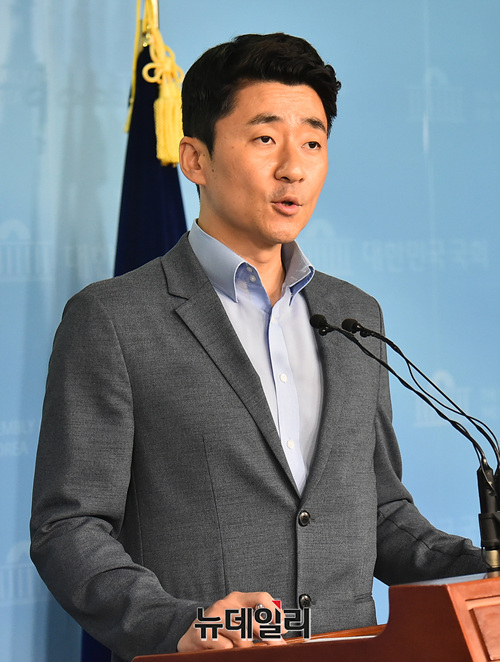 권성주 바른미래당 혁신위원이 29일 오전 국회 정론관에서 당혁신 관련 기자회견을 갖고 있다.