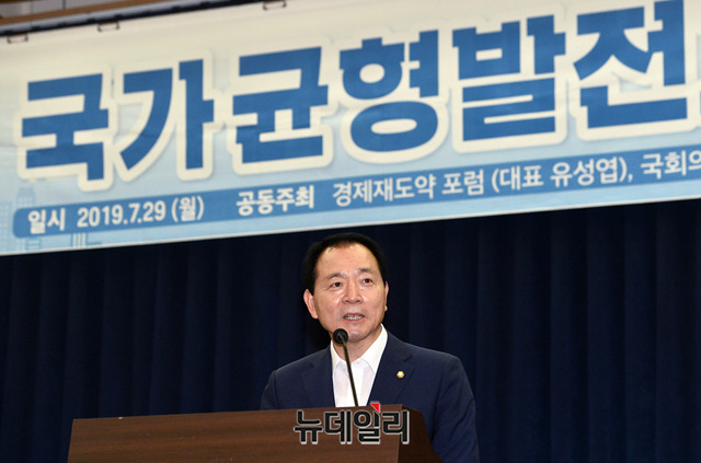 성일종 자유한국당 의원이 29일 오후 국회 의원회관에서 열린 '국가균형발전 기업도시 정책 토론회'에서 인사말을 하고 있다.